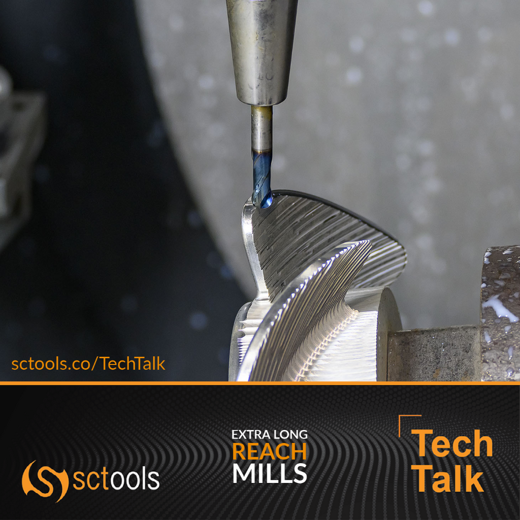 Mills with an extra-long reach are common in the mold industry, where it is necessary to reach deep into a pocket to mill without damaging the sidewall. The mills have an extended flute and a smaller lip between the cutting edge and the shank.