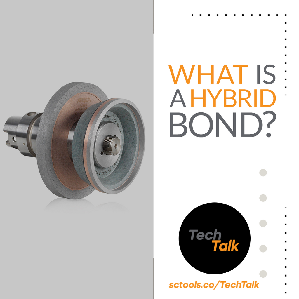 The hybrid is a blend of two very different bonding materials, a polymer and a sintering alloy, which allows the Diamond or CBN wheels to achieve the top in material removal ability, about three to four times higher than the one of resin bonds.